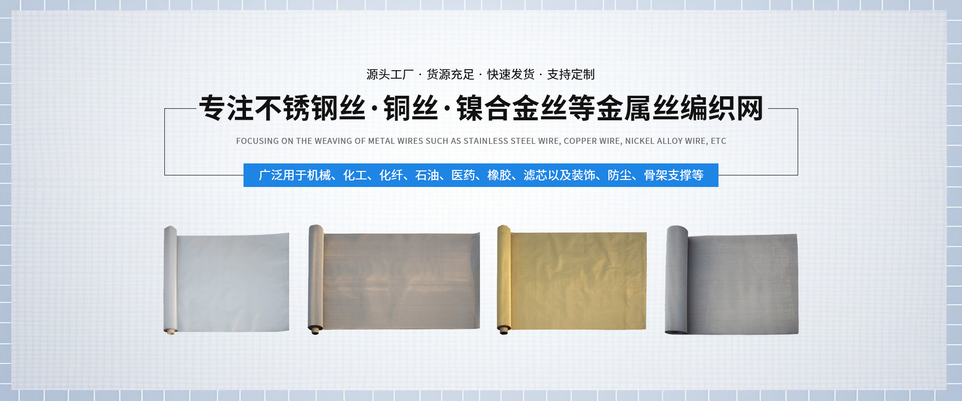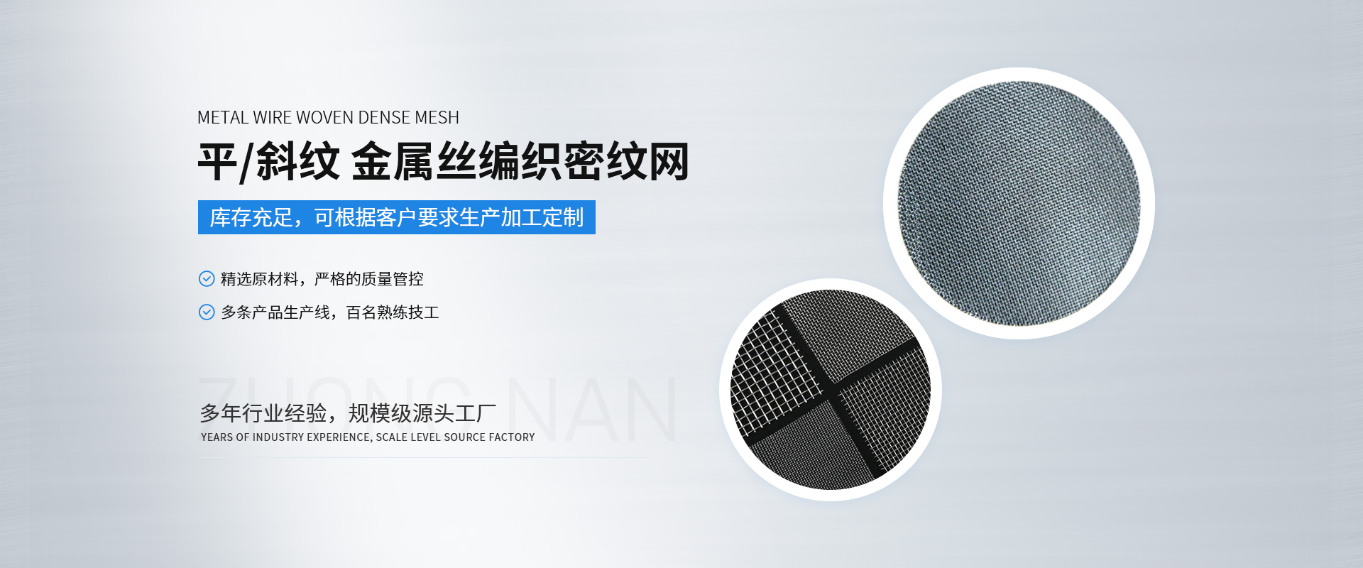 新鄉(xiāng)市中南金屬網(wǎng)有限公司成立于1999 年,公司設(shè)在河南省新鄉(xiāng)市。在過(guò)去的十幾年來(lái),我們堅(jiān)持以嚴(yán)格的管理措施、雄厚的技術(shù)力量、良好的工藝設(shè)施,質(zhì)量上乘、信譽(yù)為上為原則,把樹(shù)立良好的企業(yè)形象為工作宗旨,歷經(jīng)市場(chǎng)的嚴(yán)峻考驗(yàn)并贏得廣大用戶(hù)的一致好評(píng)。金屬絲網(wǎng)編織結(jié)構(gòu)形式有平紋和斜紋兩種方法,嚴(yán)格按照航空軍品標(biāo)準(zhǔn)HB1862—93和標(biāo)準(zhǔn)GB/T5330—2003標(biāo)準(zhǔn),并等效采用國(guó)際標(biāo)準(zhǔn)ISO9044—90標(biāo)準(zhǔn)組織生產(chǎn)。 公司擁有生產(chǎn)設(shè)備和技術(shù)人員,主要生產(chǎn)不銹鋼篩網(wǎng)、磨料網(wǎng)、金屬絲編織方孔網(wǎng)、篩網(wǎng)、濾網(wǎng) 、篩分網(wǎng) 、過(guò)濾網(wǎng)、不銹鋼網(wǎng)、絲網(wǎng)、金屬絲網(wǎng)、金屬絲編織密紋網(wǎng)、特種網(wǎng)、不銹鋼密紋網(wǎng)、荷蘭網(wǎng)、席型網(wǎng)。絲網(wǎng)材質(zhì)選用黃銅、錫青銅、不銹鋼、純鎳等。席型網(wǎng)規(guī)格7/44目—500/3500目,方孔網(wǎng)規(guī)格1/2目—500目,網(wǎng)孔25mm—0.028mm,產(chǎn)品廣泛用于機(jī)械、化工、化纖、石油、醫(yī)藥、橡膠、濾芯、固體果粒篩分、流體過(guò)濾以及裝飾、防塵、骨架支撐等。 我們以“視質(zhì)量為生命、以信譽(yù)求生存、以科技促發(fā)展、以?xún)?yōu)*產(chǎn)品為客戶(hù)服務(wù)”的經(jīng)營(yíng)理念,真誠(chéng)的希望與各界人士攜手并進(jìn),共創(chuàng)輝煌!